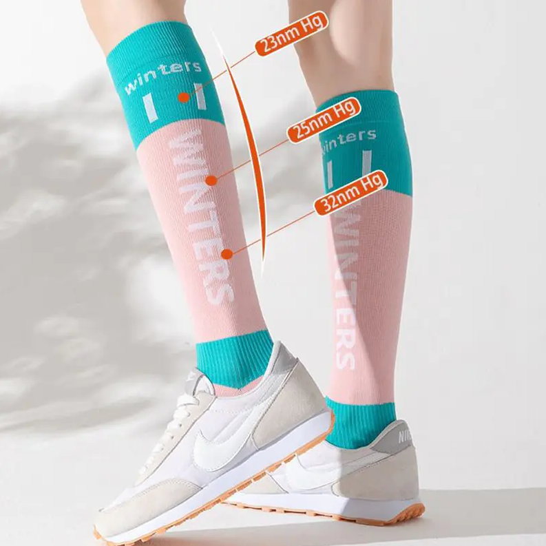 Compression socks work by applying graduated pressure — highest at the ankle and gradually decreasing toward the knee or thigh. This pressure differential creates a mechanical pumping effect that: